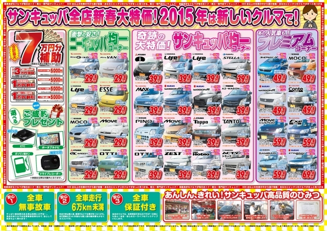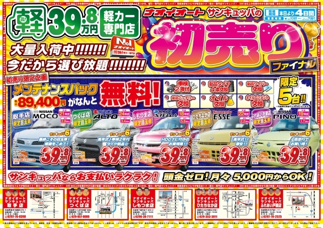 今週末の販売イベントのチラシを更新しました! 登録済み未使用車、39.8車ともに初売りファイナルです! この機会にご来店お待ちしております!