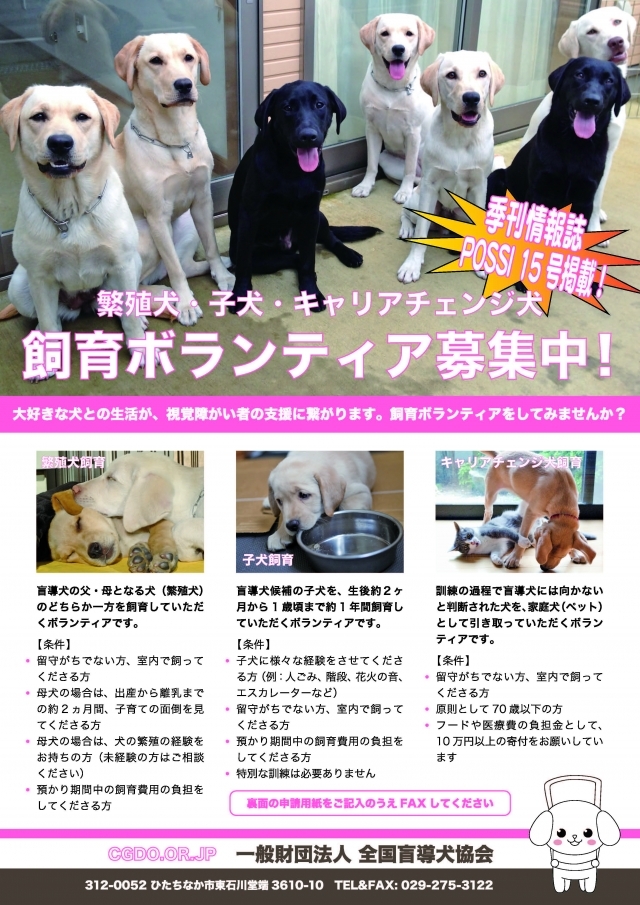 特集ページにつきましては、今回ひたちなか市にあります全国盲導犬協会様です!