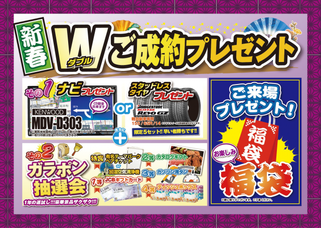 カーナビ(ケンウッド MDV-D303) or スタッドレスタイヤ プレゼント&ガラポン抽選会♪