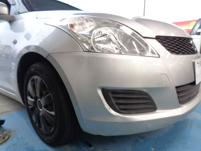 フロントバンパーが押し込まれ