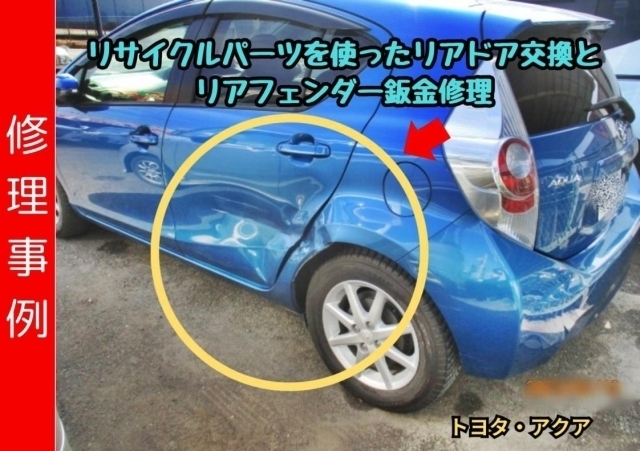 リサイクルパーツを使ったリアドア交換とリアフェンダー鈑金修理事例