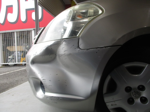 大きく凹んだフロントバンパー