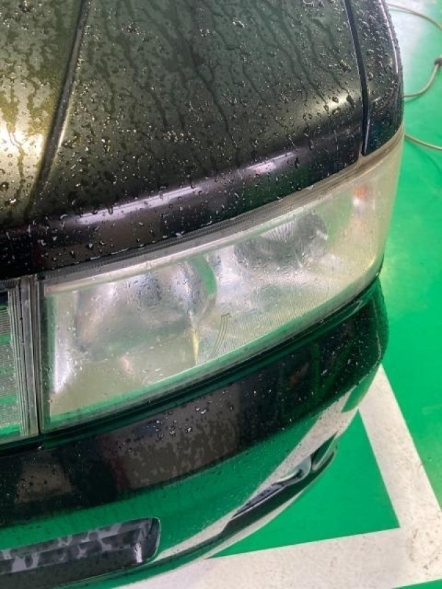 ヘッドライトが黄ばんでおり、光量が不足しておりましたのでヘッドライトクリーニングを施工させていただきました。そもそも黄ばみの主な原因は紫外線の影響です!レンズ部分は「ポリカーボネート樹脂」という素材でガラスよりもずっと耐久性に優れていますが、紫外線に弱く年月と共に黄ばみ・くすみが目立ってきます。また走行中の細かな飛び石による傷や、排気ガス・油汚れなども黄ばみやくすみの原因となっています。