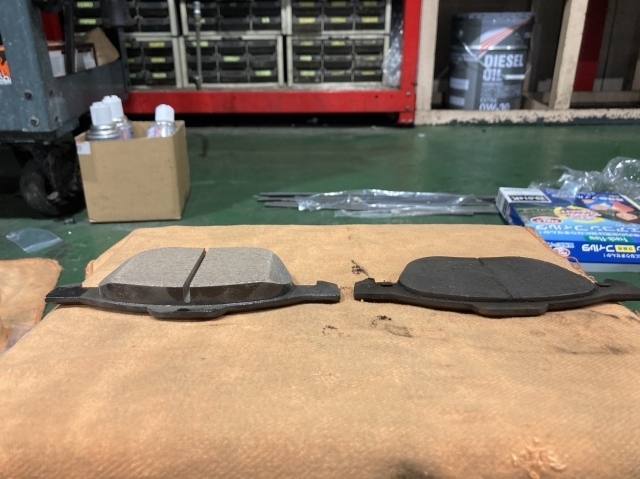 ブレーキパッドとは自転車に使わるブレーキと構造が同じでタイヤと一緒に回転しているディスクローターを挟み込んで車を停めています。新品は約10mmほどありますが、0mmになると最悪ブレーキが効かなくなってしまいます。特に残量が半分以下になると減りが早くなるため、コバックでは余裕をもって交換基準を約4mm以下でお勧めさせていただいております。