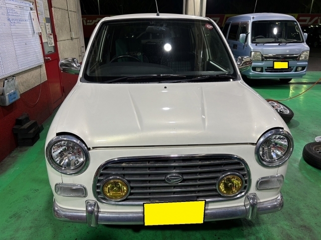 本日はダイハツ「ミラジーノ」(UA-L700S)の車検と整備を実施させていただきました。