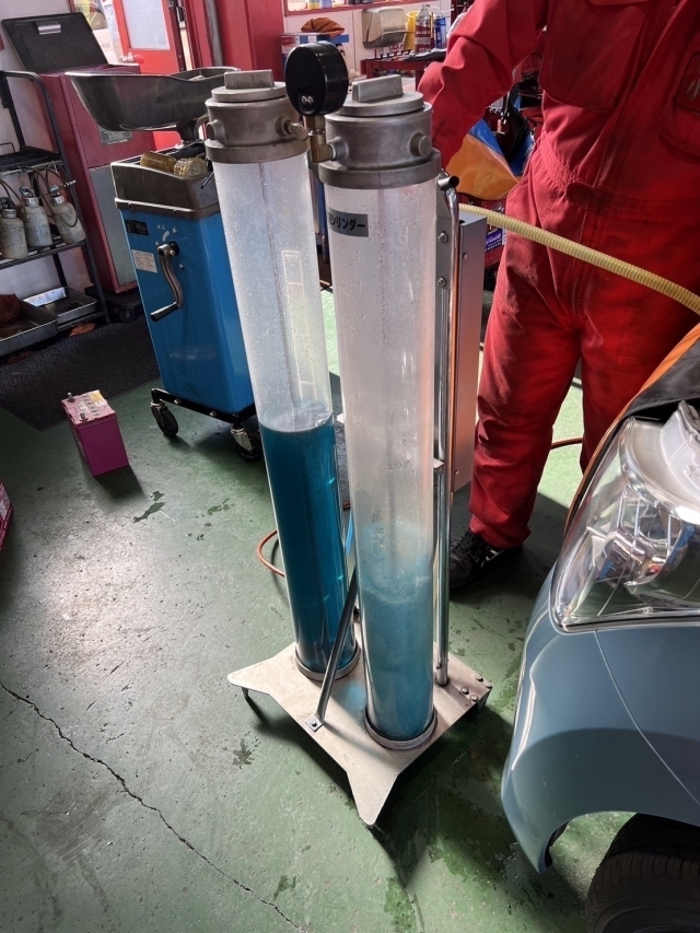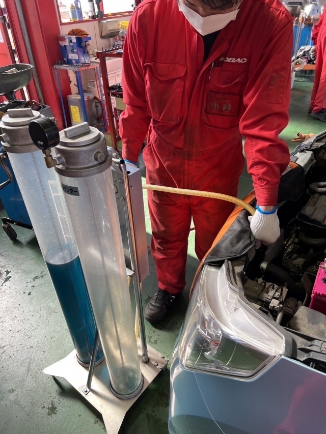 その後は新車時ほどの効果は見込めず従来のLLCよりもやや長くなる程度です。交換の際は予算と使い方によって従来品かスーパーLLCかをご提案させていただきます。こちらの車はスーパーLLCの色がブルーとなります。