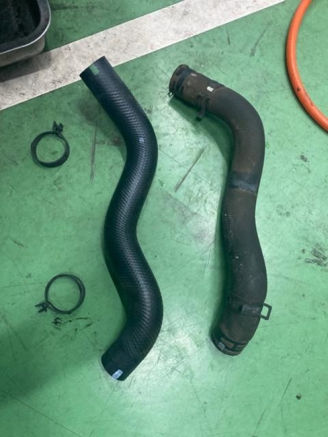 整備を進めていく中で『ラジエーターホース』から冷却水(LLC)の水漏れを発見しました。