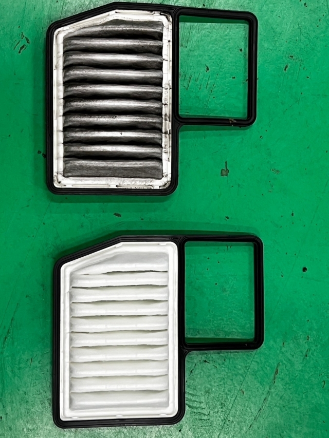 交換目安は50,000Km目安でお勧めしていますが、使用状態やエアクリーナーエレメントの種類によっては交換時期が早まる場合もあります。汚れて詰まってくると空気の流れが悪くなりエンジンにも負担はかかりますし、燃費も悪くなってしまいます。常に良い状態を保つためにも早目の交換をお勧めしています。