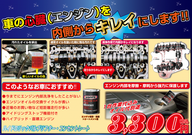 車の心臓(エンジン)を内側からキレイにします!! [3,300 円~]