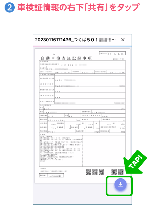 STEP4車検証をカメラで撮影し、送信
