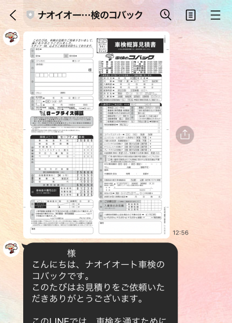 ナオイオート車検のコバックではLINEを使って
