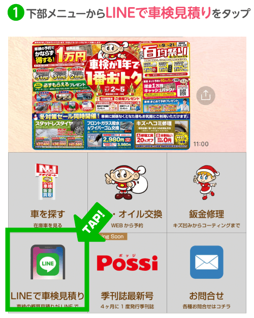 STEP2LINEで車検見積をタップ