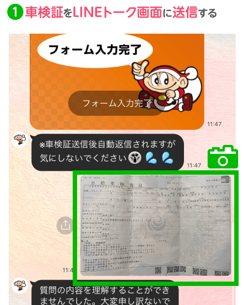 車検証の画像送付