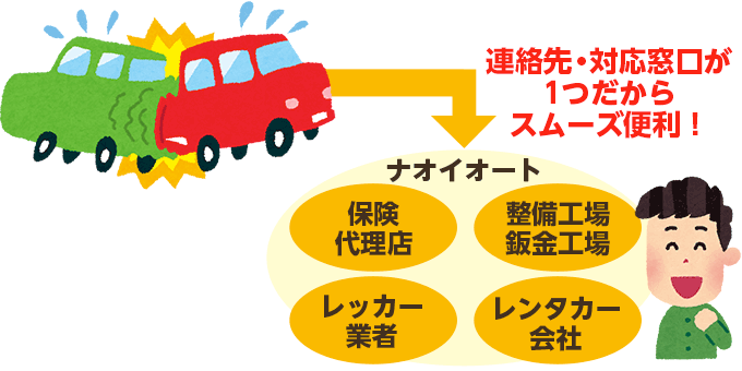 ナオイオートで自動車保険をお任せいただきますと、万が一の事故の時に、電話一本でお客様をサポートします。