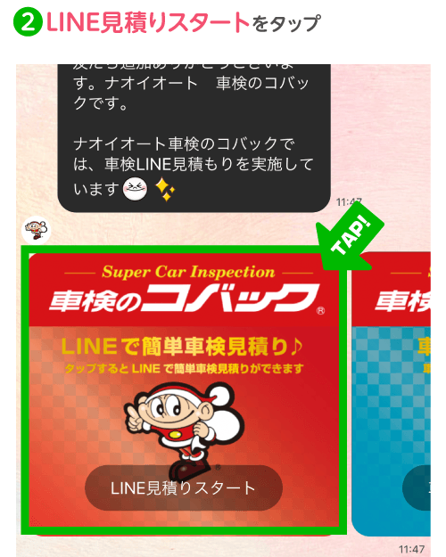 STEP2LINEで車検見積をタップ