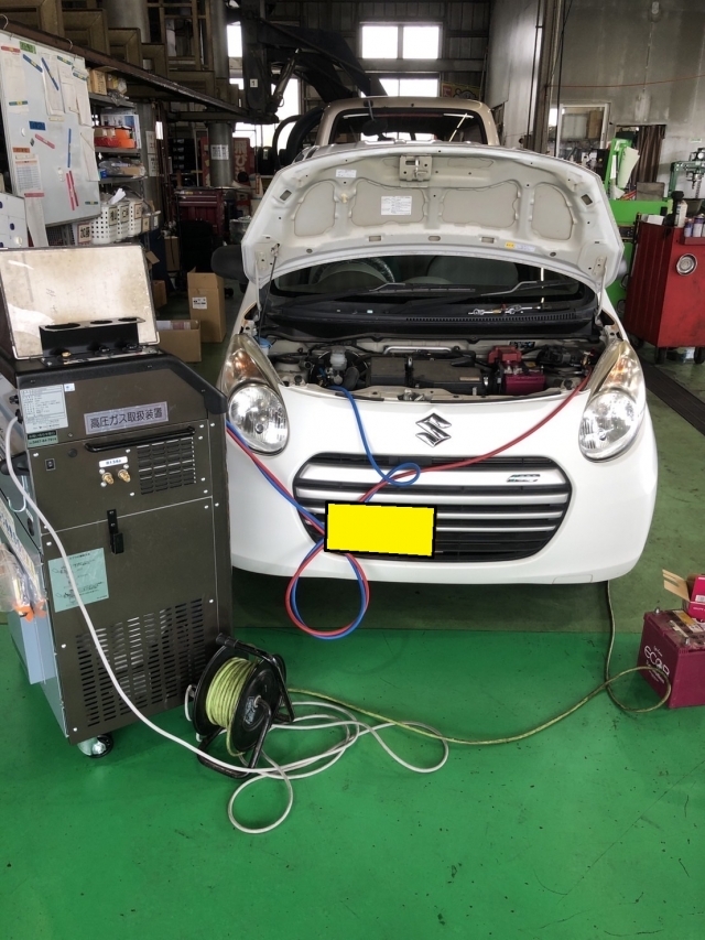 現在主流の冷媒ガス=HFC-134aは圧力ではなく、グラムで調整作業が必須です。そこで注目を集めているのが『エアコンガスのクリーニング』です!これは専用の機械を使って冷媒ガスを真空引きですべて吸い出して冷媒ガス中の水分や不純物を取り除き適正量を入れ直すという作業が可能となりました。