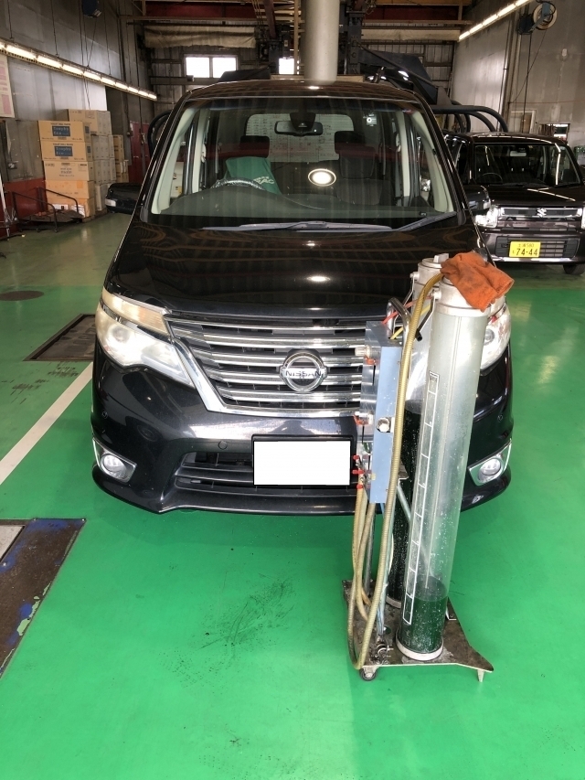 本日はニッサン「セレナ」(DAA-HFC26)の車検と整備を実施させていただきました。年式が2014年、走行距離が15万3千キロでの入庫となります。