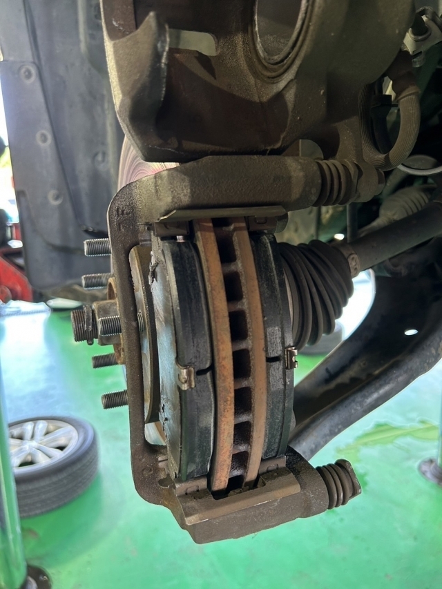 ブレーキパッドとは自転車に使われるブレーキと構造が同じでタイヤと一緒に回転しているディスクロータ ーを挟み込んで車を停めています。