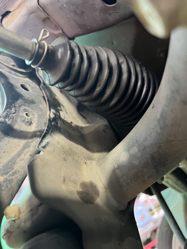 全ての車には『車検不合格になる部品』として『ブーツ』と呼ばれるゴム部品が多く使われてます。今回の車検では『ステアリングラックブーツ』を交換させていただきました。