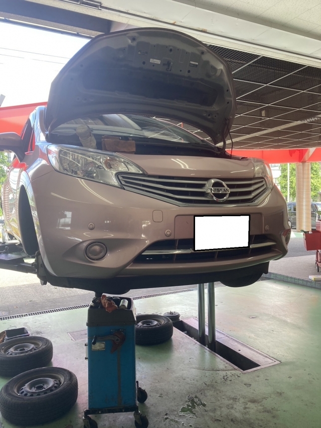 本日はニッサン「ノート」(DBA-E12)の車検と整備を実施させていただきました。年式が2014年、走行距離が6万7千キロでの入庫となります。