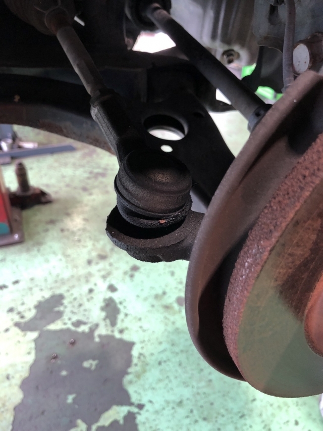 全ての車には『車検不合格になる部品』として『ブーツ』と呼ばれるゴム部品が多く使われてます。今回の車検では『タイロッドエンドブーツ』を交換させていただきました。