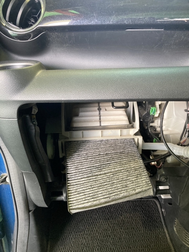 エアコンフィルターは車外から取り込む空気に混じったチリや埃を取り除いたり、花粉を取り除く部品です。フィルター部分が詰まってしまうと家庭用の掃除機と同様、吸い込む力が弱くなったり、肝心なチリや埃を除去できなくなります。そうなると車内の空気の通路内に埃が増え、その後カビが発生し特にエアコンを使用した時などイヤな臭いがしてきます。