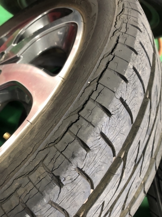 こちらのタイヤはサイドウォールと呼ばれる側面に深いひび割れがあり、4本交換させていただきました。