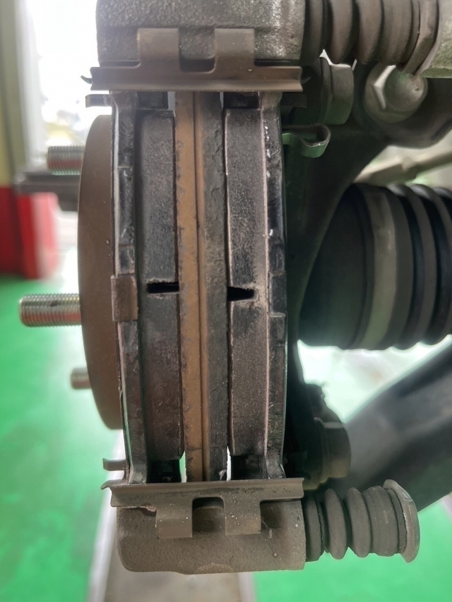 ブレーキパッドとは自転車に使われるブレーキと構造が同じでタイヤと一緒に回転しているディスクロータ ーを挟み込んで車を停めています。