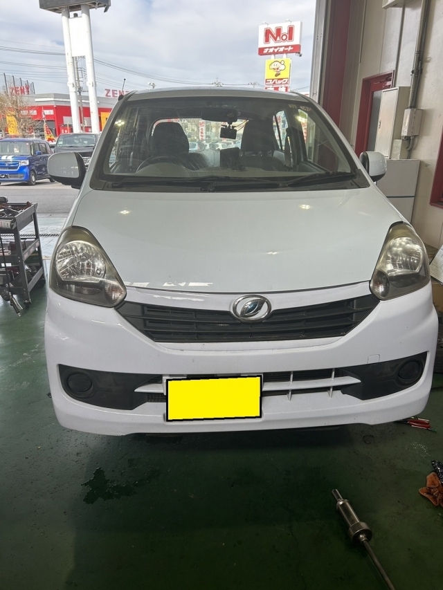 本日はダイハツ「ミライース」(DBA-LA300S)の車検と整備を実施させていただきました。年式が2014年、走行距離が13万3千キロでの入庫となります。