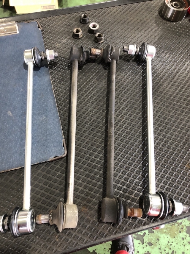 スタビライザーリンクは、スタビライザーと左右のサスペンションとを繋ぐロッド(棒)として使用され、走行中の横揺れを減少させて安定した走行や乗り心地に必要な部品となり、とても重要な役割をしています!
