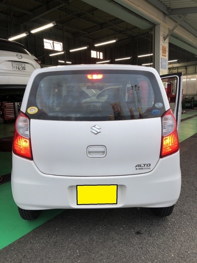 本日はスズキ「アルト」(HBD-HA25V)の車検と整備を実施させていただきました。年式が2010年、走行距離が9万3千キロでの入庫となります。