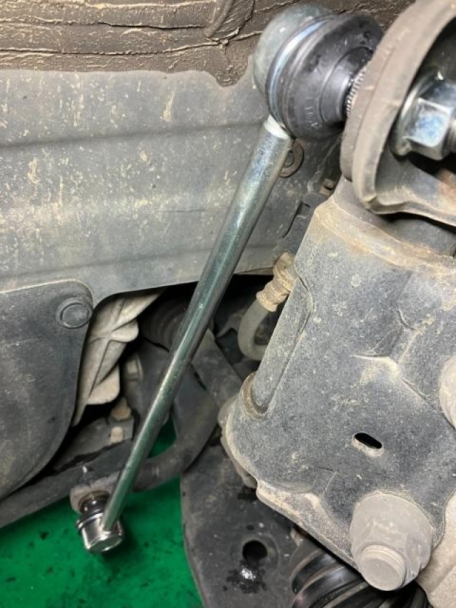 スタビライザーリンクはご存知でしょうか。この部品はスタビライザーと左右のサスペンションとを繋ぐロッド(棒)として使用され、走行中の横揺れを減少させて安定した走行や乗り心地に必要な部品となり、とても重要な役割をしています!