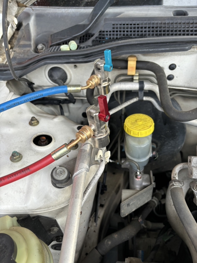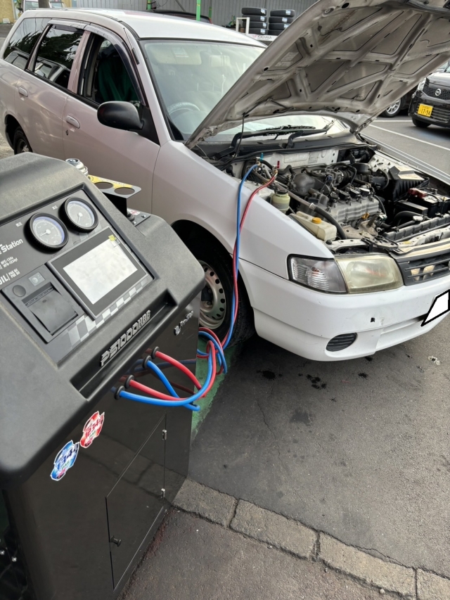 設計上はエアコンガスが漏れることはないようになっていますが、実際はジョイントなどから微量のガスが漏れて1年間で5%ほど冷媒ガスが減っていることもあります。車種によって回収できたガスの量は規定量の約半分になることもあります。これでは冷えませんね…
