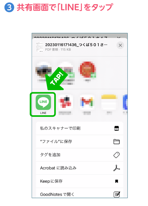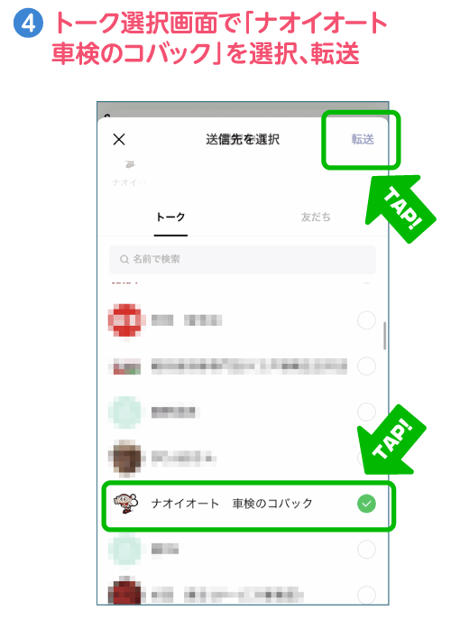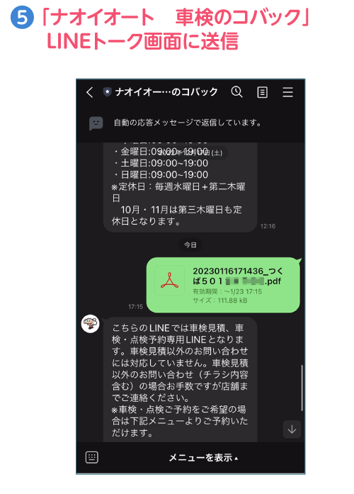 STEP6読取後、保存した車検証情報をLINEトーク画面に共有
