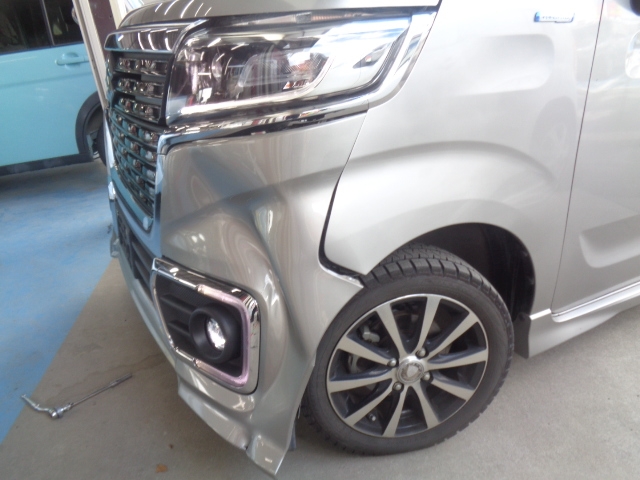 フロントバンパー、左ヘッドライト、左フロントフェンダー