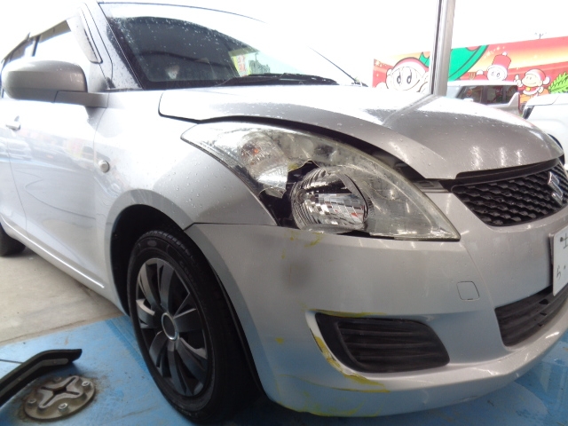 フロントバンパーの黄色いペイントを落とし、ヘッドライトが付くように