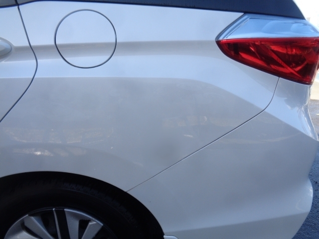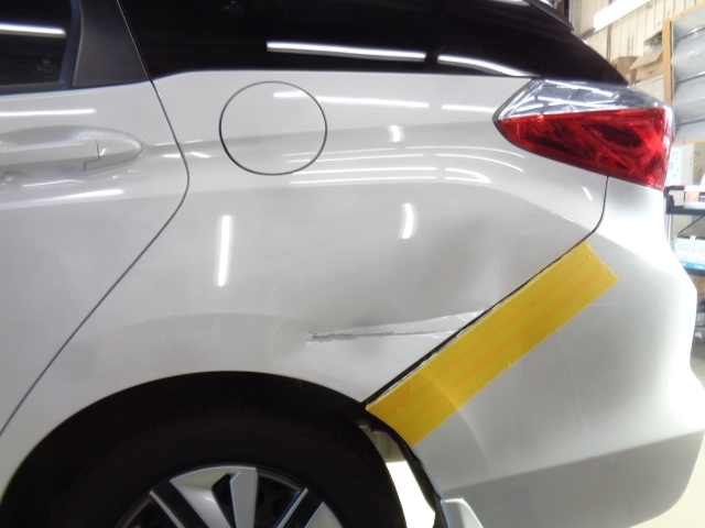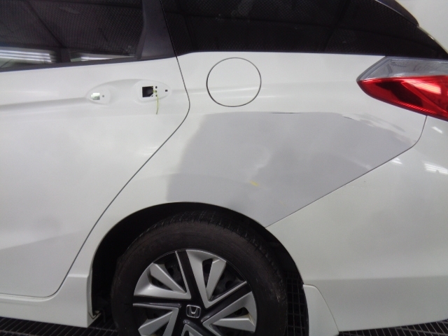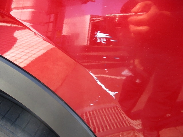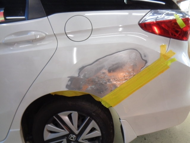 ヘコミはそのまま磨いて白いペイントを落とします。