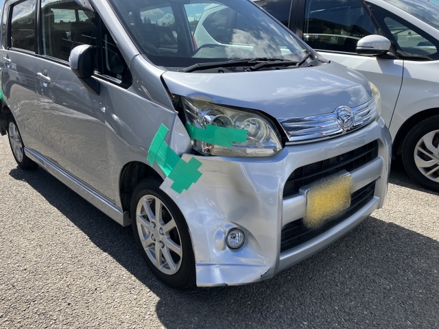 フロントバンパー、右ヘッドランプ、フード、右フロントフェンダー