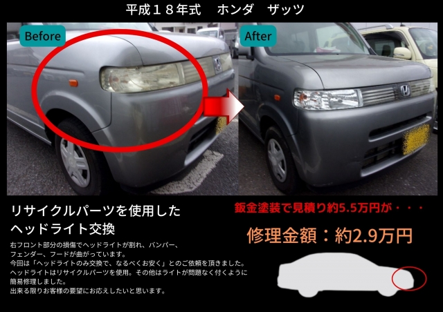 リサイクルパーツを使用したフロント部分の修理事例