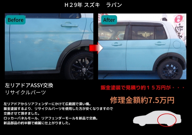 鈑金塗装するより、リサイクルパーツを使用した方が安くなりますので