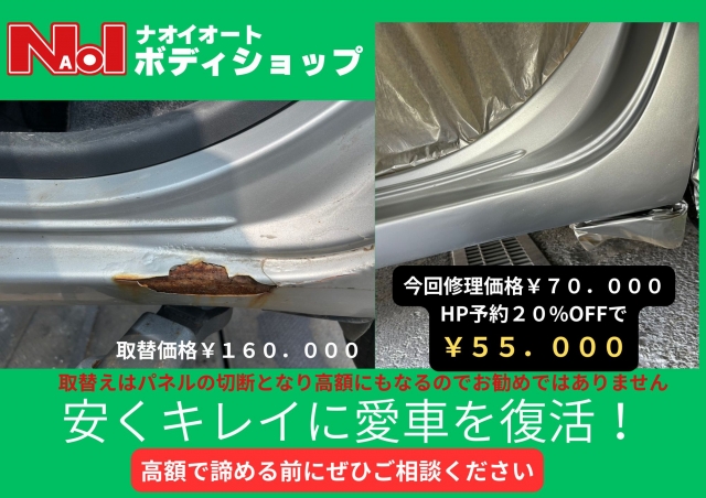 熟練の技術で鈑金塗装・修理を行うナオイオート ボディショップ。キズ・へこみ修理からリサイクル部品で格安修理、全塗装、コーティングまで、お客様の愛車を美しく蘇らせる過程をご紹介。確かな技術力をご覧ください!