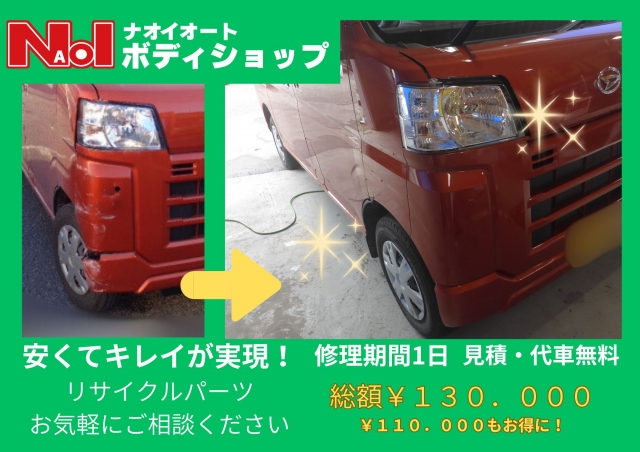 #ナオイオートボディショップ#ナオイオート#ボディショップ#鈑金#板金#自動車修理#キズヘコミ修理#塗装#事故修理#ダイハツハイゼット#ハイゼット#軽バン#軽トラック#働く車#リサイクルパーツ#中古部品#エコ修理#格安修理#高品質修理#茨城県#龍ケ崎市#取手市#牛久市#守谷市#つくば市#筑西市#下妻市#ひたちなか市#水戸市#かすみがうら市