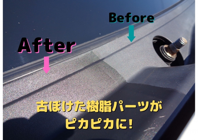いくら綺麗に洗車しても未塗装樹脂部分が白ぼけていては綺麗に見えません。