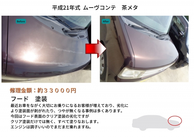 最近お車をながく大切にお乗りになるお客様が増えており、劣化により塗装面が剥がれたり、つやが無くなる事例は多くあります。