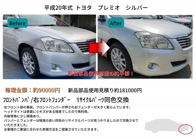 今回は同色のリサイクルパーツが見つかりましたので新品交換の約半額で済みました。