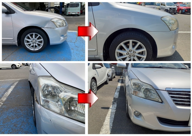 バンパーとフェンダーは程度の良い同色のリサイクルパーツが見つかりましたので交換させていただきました。