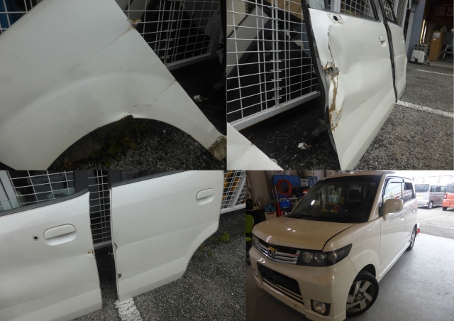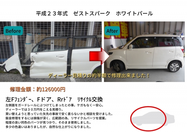 鈑金修理は可能な範囲ですがリサイクルパーツをご希望。
