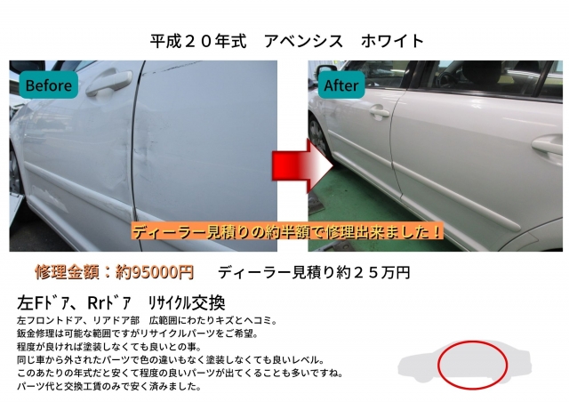 修理金額:約95000円 ディーラー見積り約250000円
