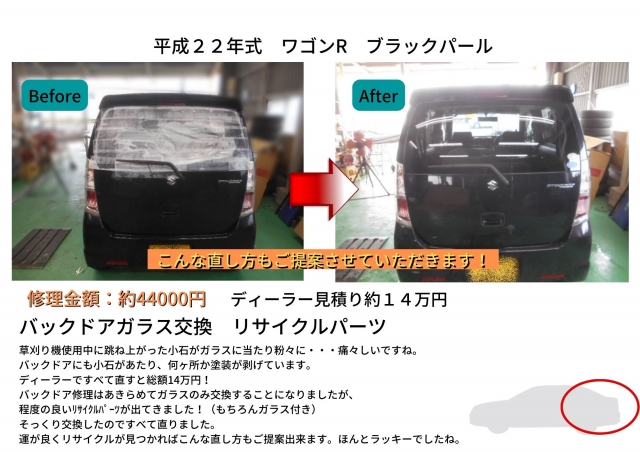 バックドアガラス交換 リサイクルパーツ