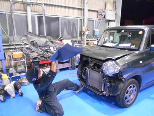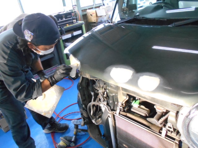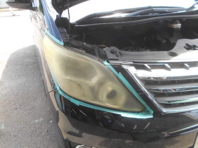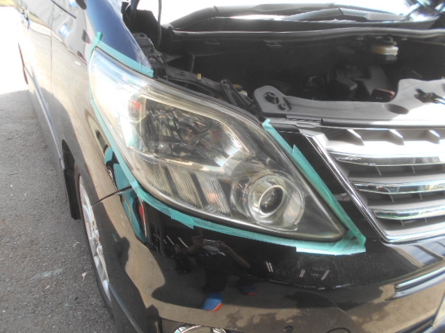アルファードボンネット塗装&ヘッドライト磨きです♪